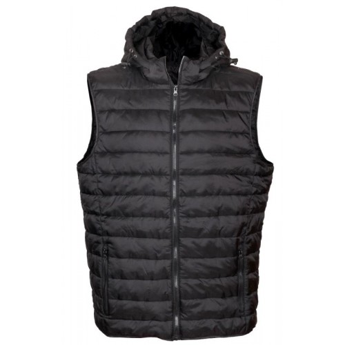 Ελαφρύ μοντέρνο γιλέκο με αποσπώμενη κουκούλα και δύο μπροστινές τσέπες με φερμουάρ.